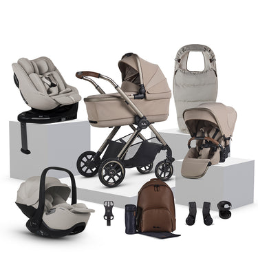 The Reef 2 Special Edition Ultimate 360 Car Seat Bundle is complete with the Glide Plus 360 infant carrier, Base Plus 360 and adaptors, luxury bamboo carrycot, premium changing backpack, thermal footmuff, cup holder and phone holder.